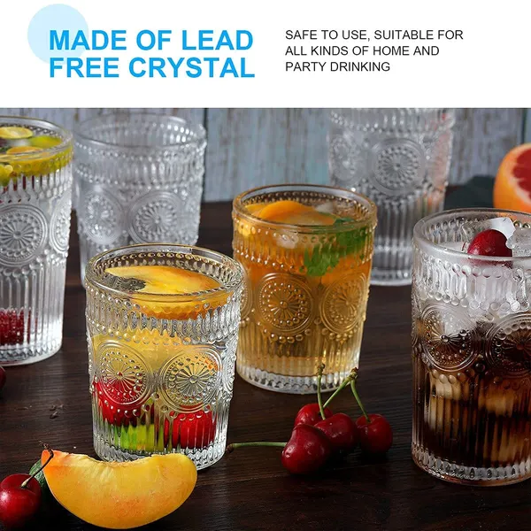 Glass Drinking Cup Set Of 6 Embossed Textured Designer Glasses Perfect For ..More