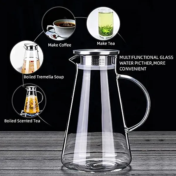 Glass Pitcher With Stainless Steel Air Tight Lid Iced Tea Pitcher Water Jug..More